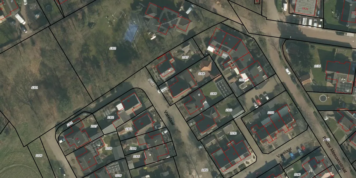 Het perceel waarop Varelaar 45 staat heeft een oppervlakte van 442 m². Dit is een groot perceel. De perceeloppervlakte wordt geregistreerd door het Kadaster. Gedetailleerde informatie over de maten van dit perceel kunt u vinden in het rapport Kadastrale kaart met maatvoering van Varelaar 45.