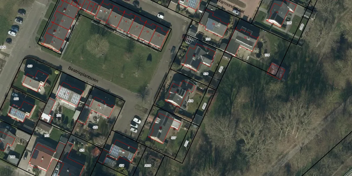 Het perceel waarop Beatrixplantsoen 13 staat heeft een oppervlakte van 540 m². Dit is een groot perceel. De perceeloppervlakte wordt geregistreerd door het Kadaster. Gedetailleerde informatie over de maten van dit perceel kunt u vinden in het rapport Kadastrale kaart met maatvoering van Beatrixplantsoen 13.