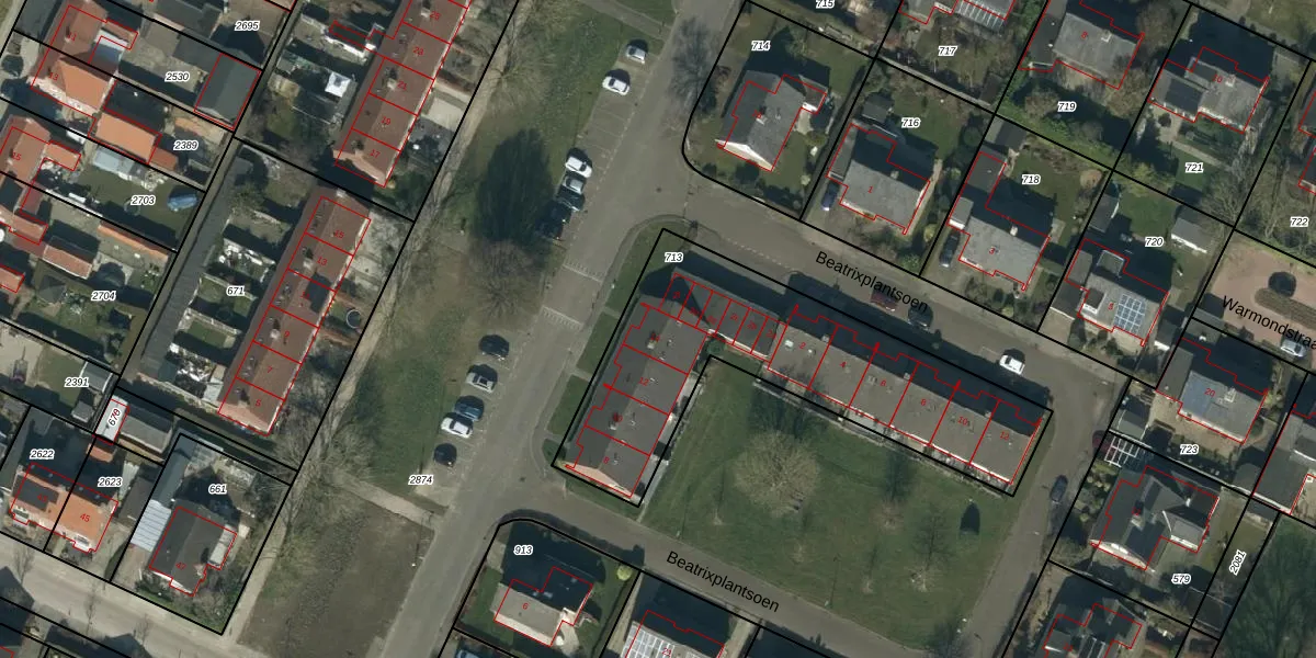 Beatrixstraat 14 is gelegen op kadastraal perceel DSN03R713. Deze kadastrale aanduiding is uniek en wordt gebruikt door het Kadaster om eigendomsrechten en andere zakelijke rechten vast te leggen. Het perceel maakt onderdeel uit van de kadastrale gemeente Dussen.
