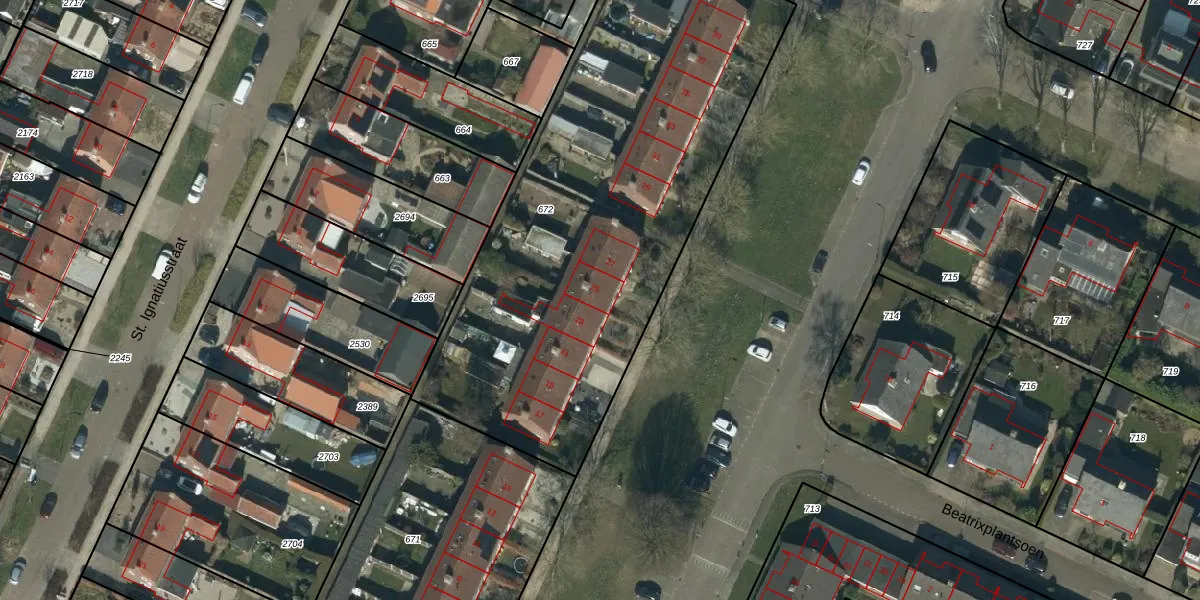 Het perceel waarop Beatrixstraat 25 staat heeft een oppervlakte van 2610 m². Dit is een zeer groot perceel. De perceeloppervlakte wordt geregistreerd door het Kadaster. Gedetailleerde informatie over de maten van dit perceel kunt u vinden in het rapport Kadastrale kaart met maatvoering van Beatrixstraat 25.