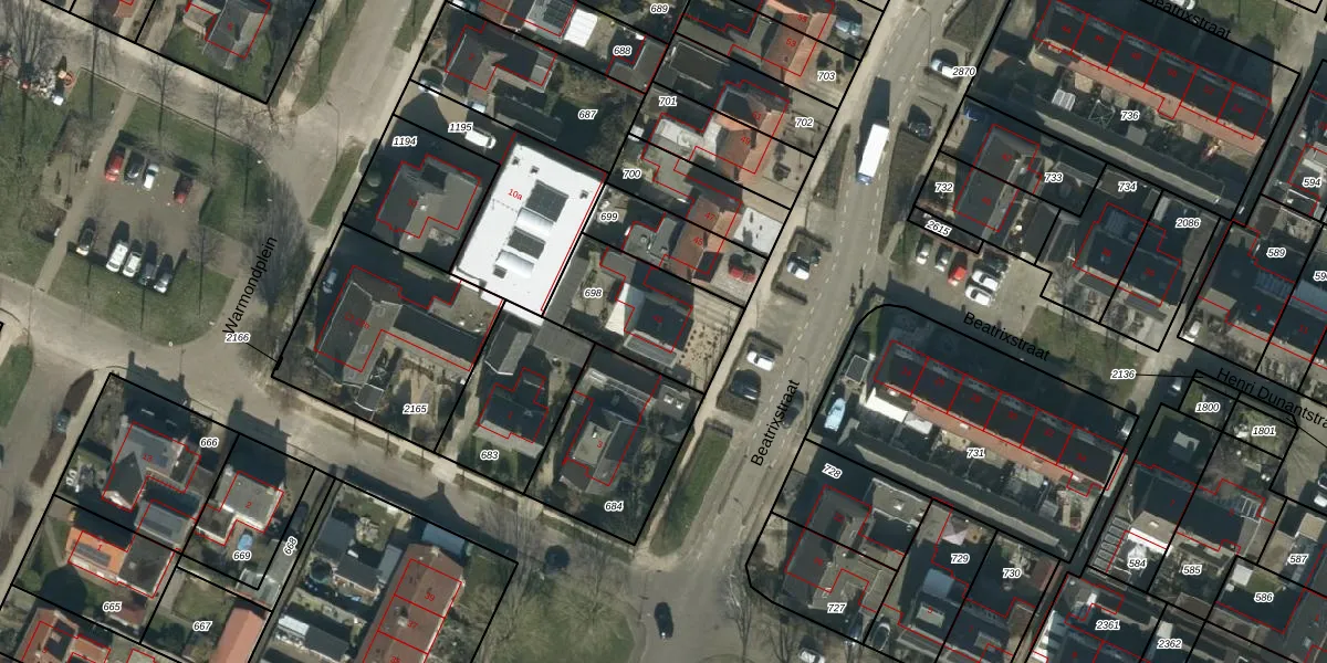 Gebruik de zoekbalk of klik op een perceel voor informatie over de adressen binnen dit perceel.