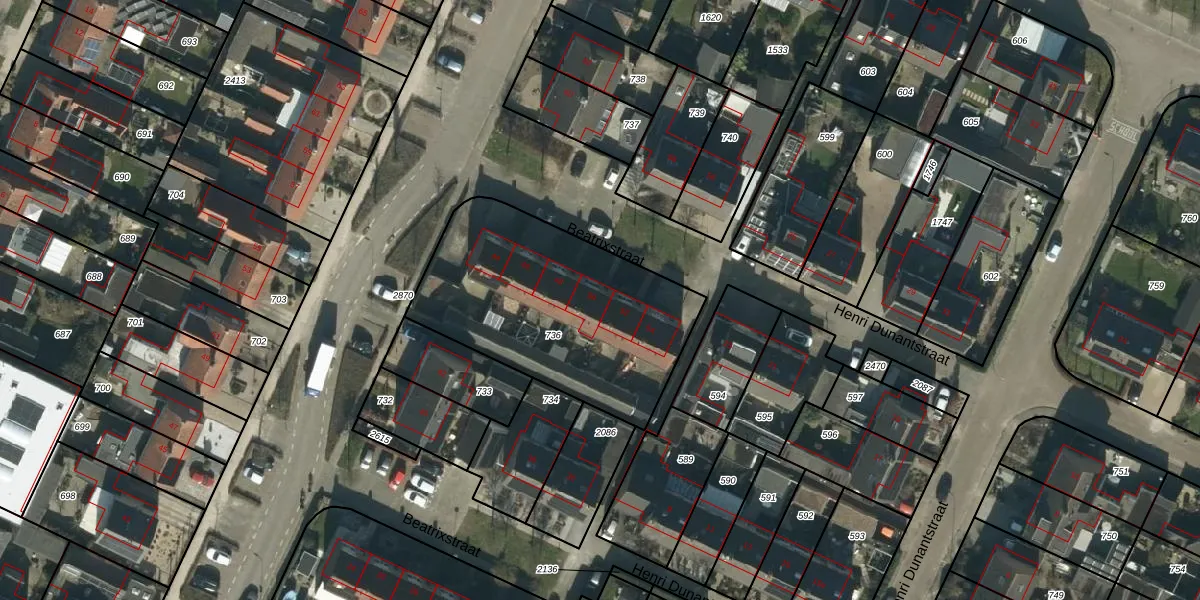 Beatrixstraat 50 is gelegen op kadastraal perceel DSN03R736. Deze kadastrale aanduiding is uniek en wordt gebruikt door het Kadaster om eigendomsrechten en andere zakelijke rechten vast te leggen. Het perceel maakt onderdeel uit van de kadastrale gemeente Dussen.