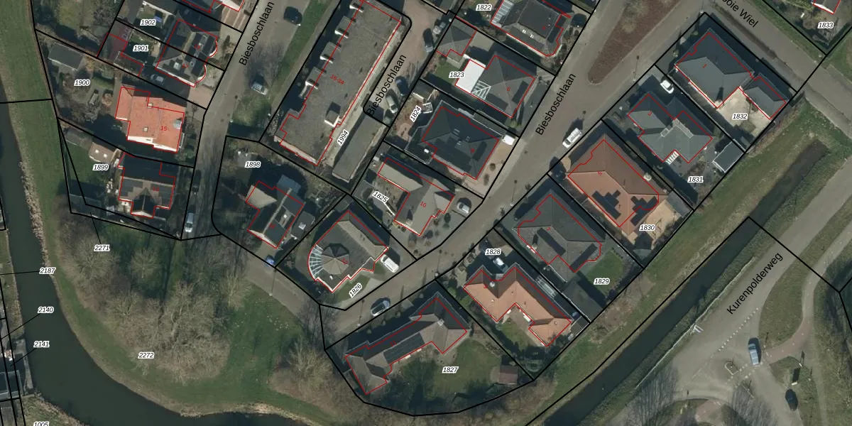 Biesboschlaan 10 is gelegen op kadastraal perceel DSN03R1825. Deze kadastrale aanduiding is uniek en wordt gebruikt door het Kadaster om eigendomsrechten en andere zakelijke rechten vast te leggen. Het perceel maakt onderdeel uit van de kadastrale gemeente Dussen.