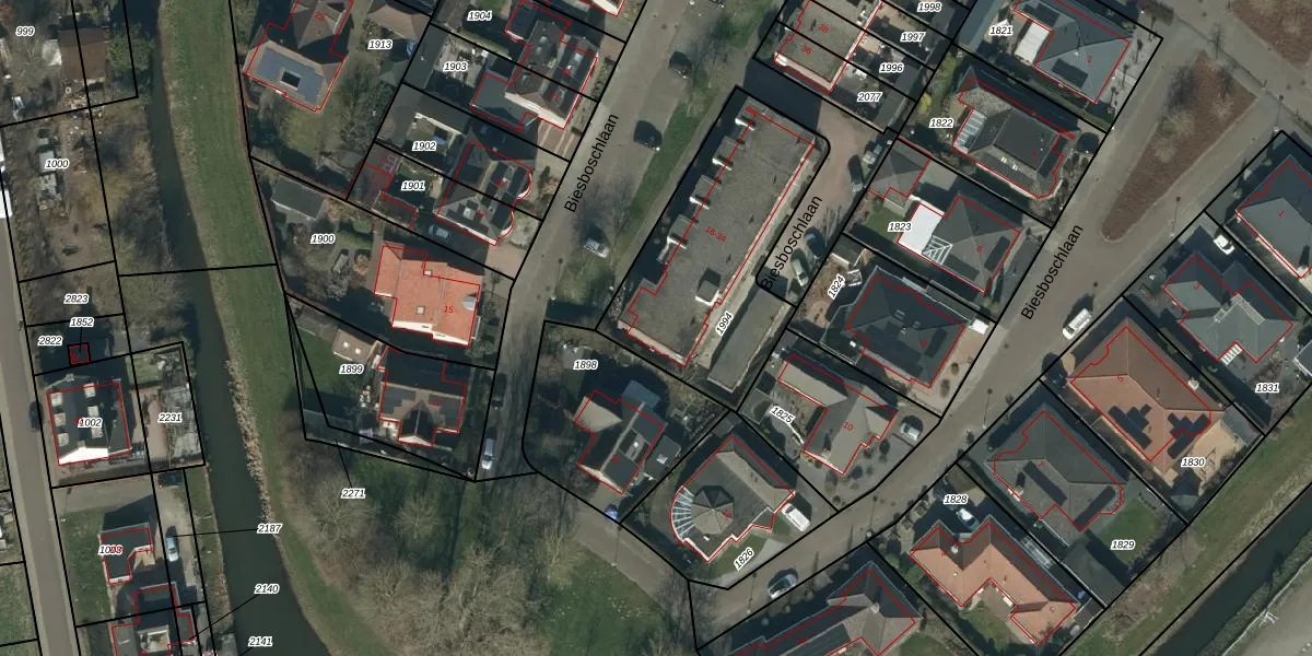 Biesboschlaan 16 is gelegen op kadastraal perceel DSN03R1994. Deze kadastrale aanduiding is uniek en wordt gebruikt door het Kadaster om eigendomsrechten en andere zakelijke rechten vast te leggen. Het perceel maakt onderdeel uit van de kadastrale gemeente Dussen.