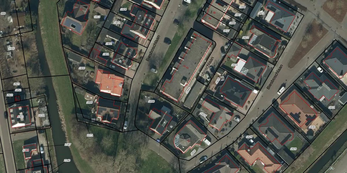 Het perceel waarop Biesboschlaan 18 staat heeft een oppervlakte van 882 m². Dit is een groot perceel. De perceeloppervlakte wordt geregistreerd door het Kadaster. Gedetailleerde informatie over de maten van dit perceel kunt u vinden in het rapport Kadastrale kaart met maatvoering van Biesboschlaan 18.