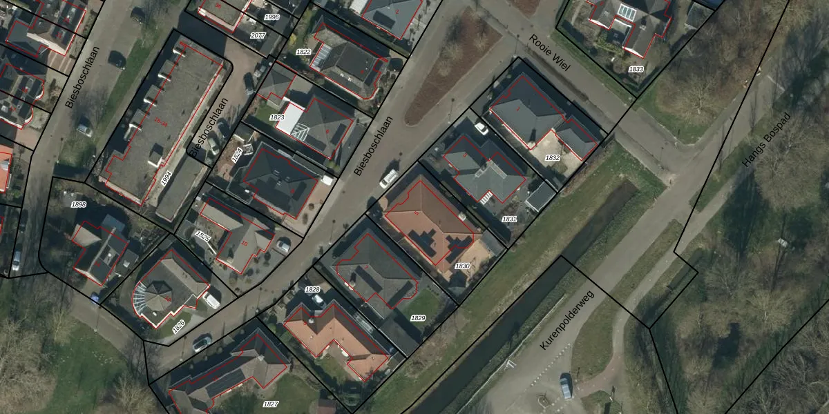 Biesboschlaan 5 is gelegen op kadastraal perceel DSN03R1830. Deze kadastrale aanduiding is uniek en wordt gebruikt door het Kadaster om eigendomsrechten en andere zakelijke rechten vast te leggen. Het perceel maakt onderdeel uit van de kadastrale gemeente Dussen.