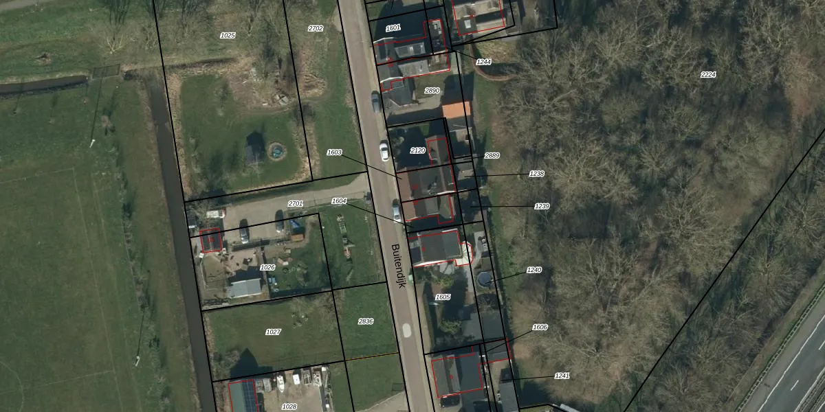 Buitendijk 10 is gelegen op kadastraal perceel DSN03R1604. Deze kadastrale aanduiding is uniek en wordt gebruikt door het Kadaster om eigendomsrechten en andere zakelijke rechten vast te leggen. Het perceel maakt onderdeel uit van de kadastrale gemeente Dussen.