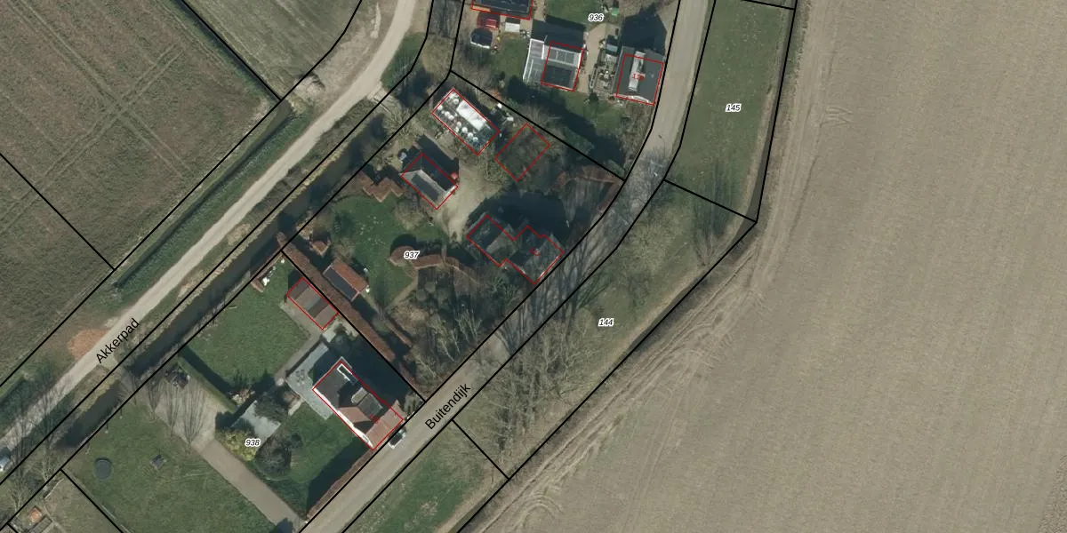 Het perceel waarop Buitendijk 117 staat heeft een oppervlakte van 2000 m². Dit is een zeer groot perceel. De perceeloppervlakte wordt geregistreerd door het Kadaster. Gedetailleerde informatie over de maten van dit perceel kunt u vinden in het rapport Kadastrale kaart met maatvoering van Buitendijk 117.