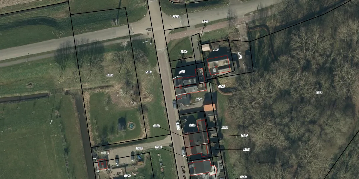 Het perceel waarop Buitendijk 16 staat heeft een oppervlakte van 363 m². Dit is een groot perceel. De perceeloppervlakte wordt geregistreerd door het Kadaster. Gedetailleerde informatie over de maten van dit perceel kunt u vinden in het rapport Kadastrale kaart met maatvoering van Buitendijk 16.