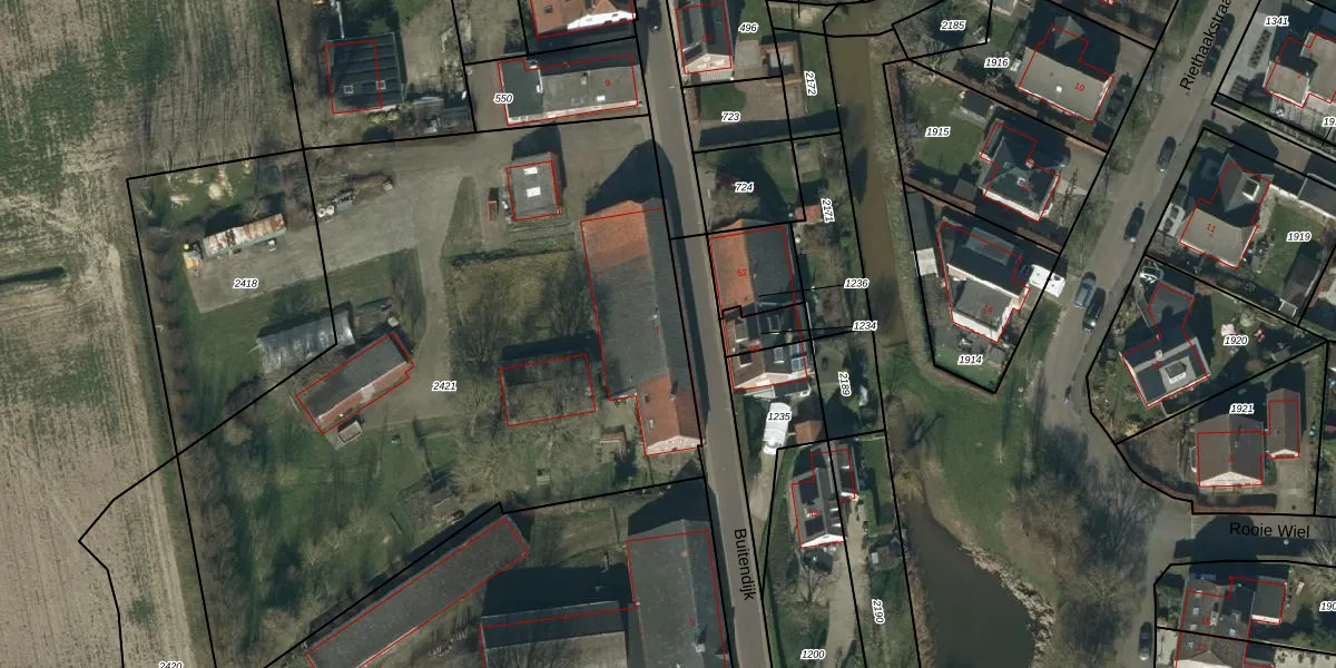 Het perceel waarop Buitendijk 7 staat heeft een oppervlakte van 4070 m². Dit is een zeer groot perceel. De perceeloppervlakte wordt geregistreerd door het Kadaster. Gedetailleerde informatie over de maten van dit perceel kunt u vinden in het rapport Kadastrale kaart met maatvoering van Buitendijk 7.