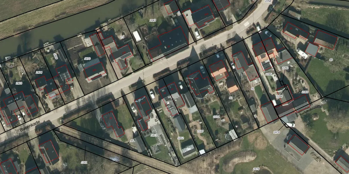 Buitenkade 20 is gelegen op kadastraal perceel DSN03R2100. Deze kadastrale aanduiding is uniek en wordt gebruikt door het Kadaster om eigendomsrechten en andere zakelijke rechten vast te leggen. Het perceel maakt onderdeel uit van de kadastrale gemeente Dussen.