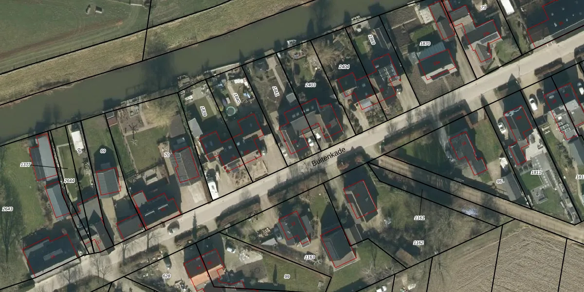 Buitenkade 21-c is gelegen op kadastraal perceel DSN03R1841. Deze kadastrale aanduiding is uniek en wordt gebruikt door het Kadaster om eigendomsrechten en andere zakelijke rechten vast te leggen. Het perceel maakt onderdeel uit van de kadastrale gemeente Dussen.