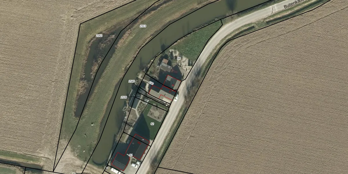 Buitenkade 39 is gelegen op kadastraal perceel DSN03R84. Deze kadastrale aanduiding is uniek en wordt gebruikt door het Kadaster om eigendomsrechten en andere zakelijke rechten vast te leggen. Het perceel maakt onderdeel uit van de kadastrale gemeente Dussen.