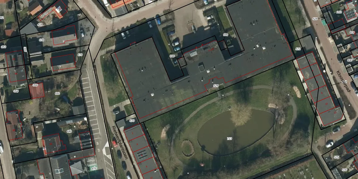 Het perceel waarop In 't Rietwerf 101 staat heeft een oppervlakte van 3100 m². Dit is een zeer groot perceel. De perceeloppervlakte wordt geregistreerd door het Kadaster. Gedetailleerde informatie over de maten van dit perceel kunt u vinden in het rapport Kadastrale kaart met maatvoering van In 't Rietwerf 101.