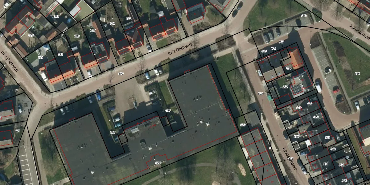 Het perceel waarop In 't Rietwerf 129 staat heeft een oppervlakte van 3100 m². Dit is een zeer groot perceel. De perceeloppervlakte wordt geregistreerd door het Kadaster. Gedetailleerde informatie over de maten van dit perceel kunt u vinden in het rapport Kadastrale kaart met maatvoering van In 't Rietwerf 129.