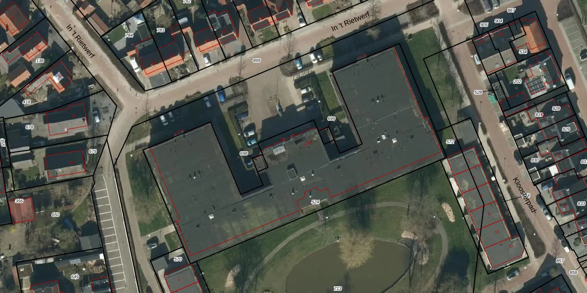 Het perceel waarop In 't Rietwerf 25 staat heeft een oppervlakte van 3100 m². Dit is een zeer groot perceel. De perceeloppervlakte wordt geregistreerd door het Kadaster. Gedetailleerde informatie over de maten van dit perceel kunt u vinden in het rapport Kadastrale kaart met maatvoering van In 't Rietwerf 25.