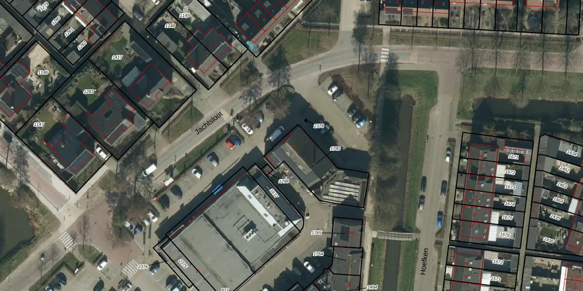 Het perceel waarop Jachtsloot 2-b staat heeft een oppervlakte van 450 m². Dit is een groot perceel. De perceeloppervlakte wordt geregistreerd door het Kadaster. Gedetailleerde informatie over de maten van dit perceel kunt u vinden in het rapport Kadastrale kaart met maatvoering van Jachtsloot 2-b.