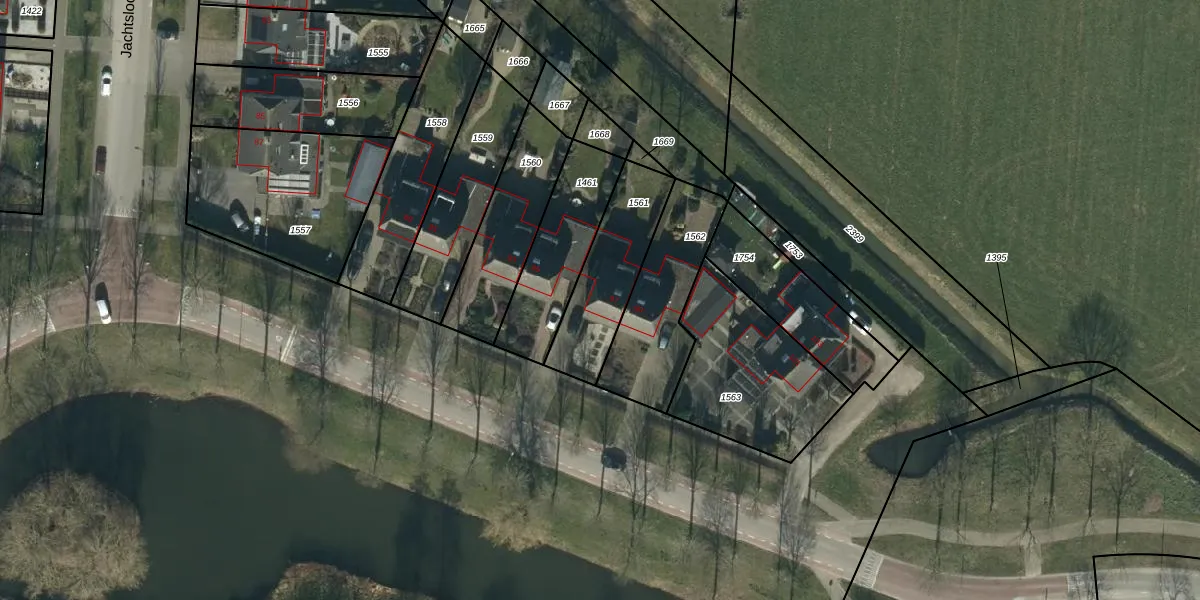 Het perceel waarop Jachtsloot 97 staat heeft een oppervlakte van 339 m². Dit is een groot perceel. De perceeloppervlakte wordt geregistreerd door het Kadaster. Gedetailleerde informatie over de maten van dit perceel kunt u vinden in het rapport Kadastrale kaart met maatvoering van Jachtsloot 97.