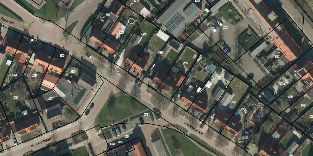 Julianastraat 30 is gelegen op kadastraal perceel DSN03O901. Deze kadastrale aanduiding is uniek en wordt gebruikt door het Kadaster om eigendomsrechten en andere zakelijke rechten vast te leggen. Het perceel maakt onderdeel uit van de kadastrale gemeente Dussen.