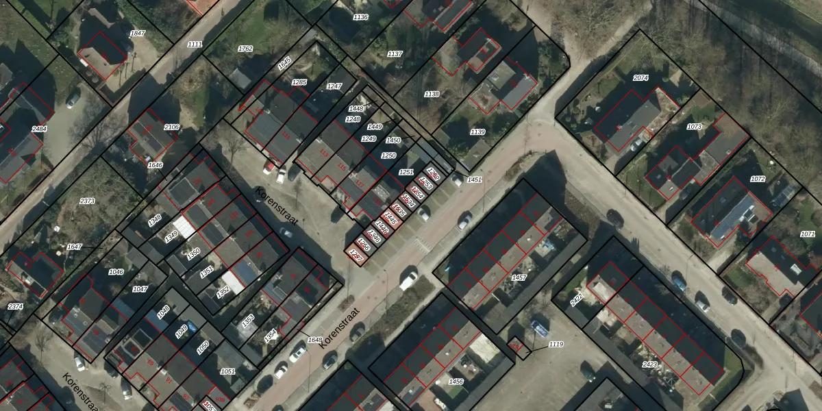 Het perceel waarop Korenstraat 119-g staat heeft een oppervlakte van 16 m². Dit is een klein perceel. De perceeloppervlakte wordt geregistreerd door het Kadaster. Gedetailleerde informatie over de maten van dit perceel kunt u vinden in het rapport Kadastrale kaart met maatvoering van Korenstraat 119-g.