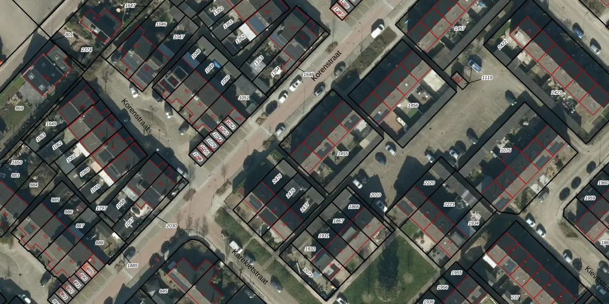 Het perceel waarop Korenstraat 18 staat heeft een oppervlakte van 598 m². Dit is een groot perceel. De perceeloppervlakte wordt geregistreerd door het Kadaster. Gedetailleerde informatie over de maten van dit perceel kunt u vinden in het rapport Kadastrale kaart met maatvoering van Korenstraat 18.