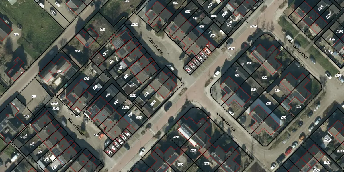 Gebruik de zoekbalk of klik op een perceel voor informatie over de adressen binnen dit perceel.