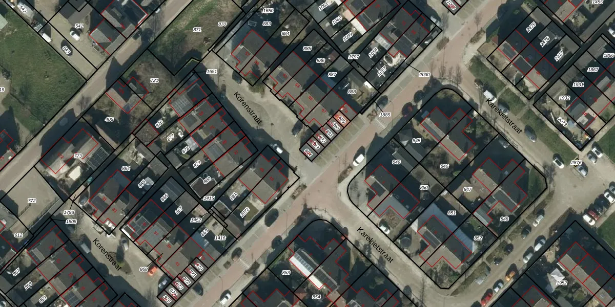 Het perceel waarop Korenstraat 67-a staat heeft een oppervlakte van 18 m². Dit is een klein perceel. De perceeloppervlakte wordt geregistreerd door het Kadaster. Gedetailleerde informatie over de maten van dit perceel kunt u vinden in het rapport Kadastrale kaart met maatvoering van Korenstraat 67-a.