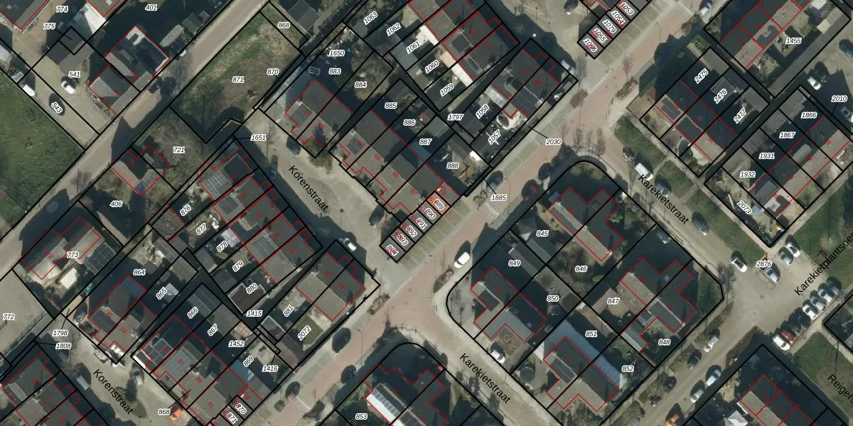 Het perceel waarop Korenstraat 67-e staat heeft een oppervlakte van 16 m². Dit is een klein perceel. De perceeloppervlakte wordt geregistreerd door het Kadaster. Gedetailleerde informatie over de maten van dit perceel kunt u vinden in het rapport Kadastrale kaart met maatvoering van Korenstraat 67-e.