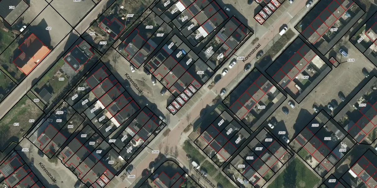 Het perceel waarop Korenstraat 93-e staat heeft een oppervlakte van 16 m². Dit is een klein perceel. De perceeloppervlakte wordt geregistreerd door het Kadaster. Gedetailleerde informatie over de maten van dit perceel kunt u vinden in het rapport Kadastrale kaart met maatvoering van Korenstraat 93-e.