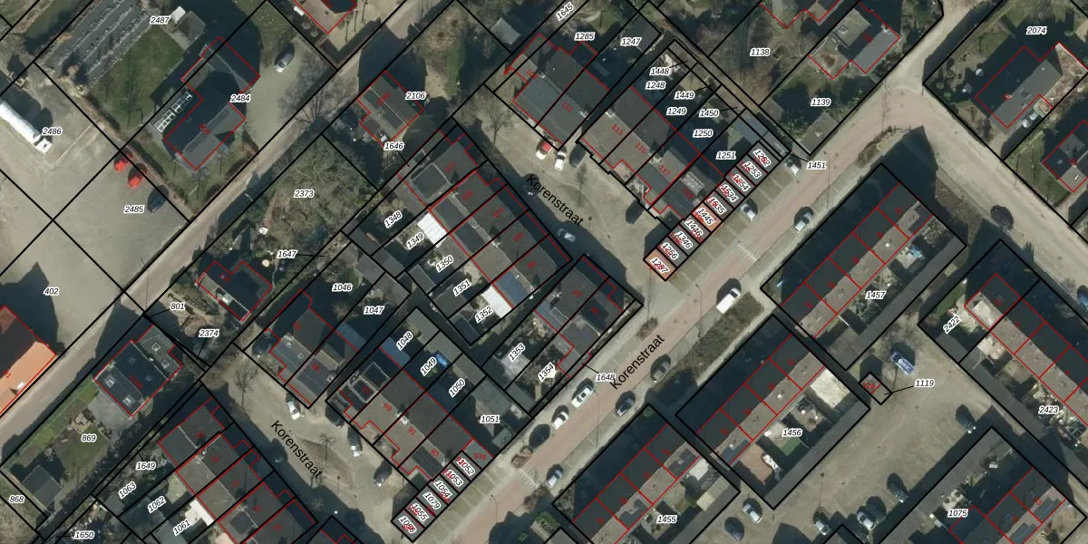 Korenstraat 99 is gelegen op kadastraal perceel DSN03R1352. Deze kadastrale aanduiding is uniek en wordt gebruikt door het Kadaster om eigendomsrechten en andere zakelijke rechten vast te leggen. Het perceel maakt onderdeel uit van de kadastrale gemeente Dussen.