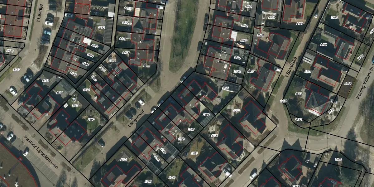 Het perceel waarop Langewerf 16 staat heeft een oppervlakte van 225 m². Dit is een middelgroot perceel. De perceeloppervlakte wordt geregistreerd door het Kadaster. Gedetailleerde informatie over de maten van dit perceel kunt u vinden in het rapport Kadastrale kaart met maatvoering van Langewerf 16.