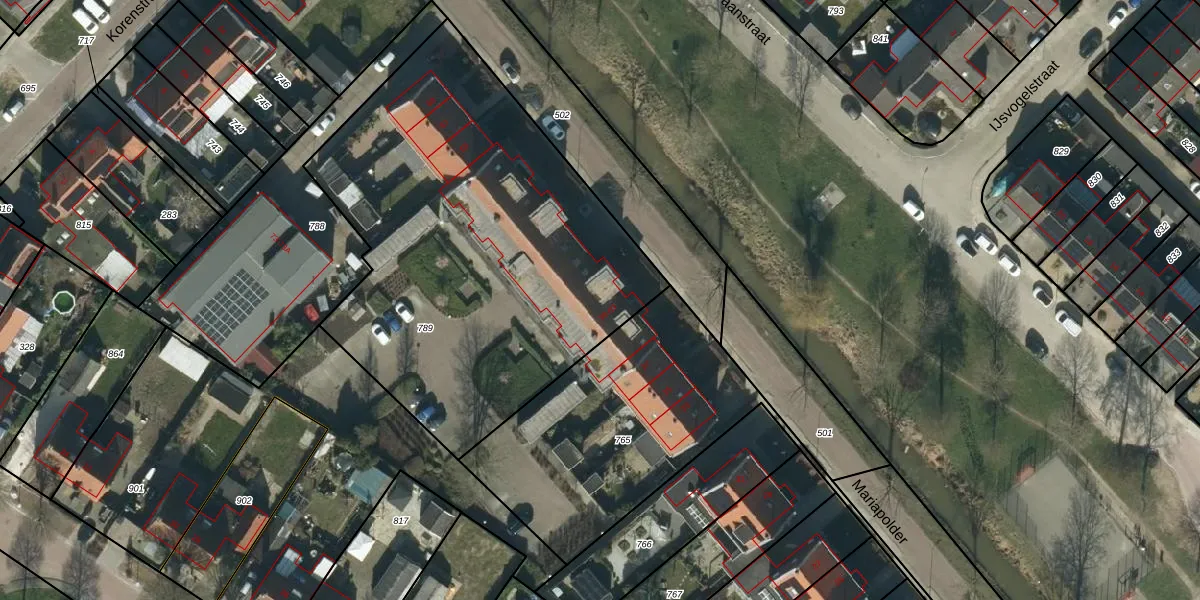 Het perceel waarop Mariapolder 39 staat heeft een oppervlakte van 2365 m². Dit is een zeer groot perceel. De perceeloppervlakte wordt geregistreerd door het Kadaster. Gedetailleerde informatie over de maten van dit perceel kunt u vinden in het rapport Kadastrale kaart met maatvoering van Mariapolder 39.