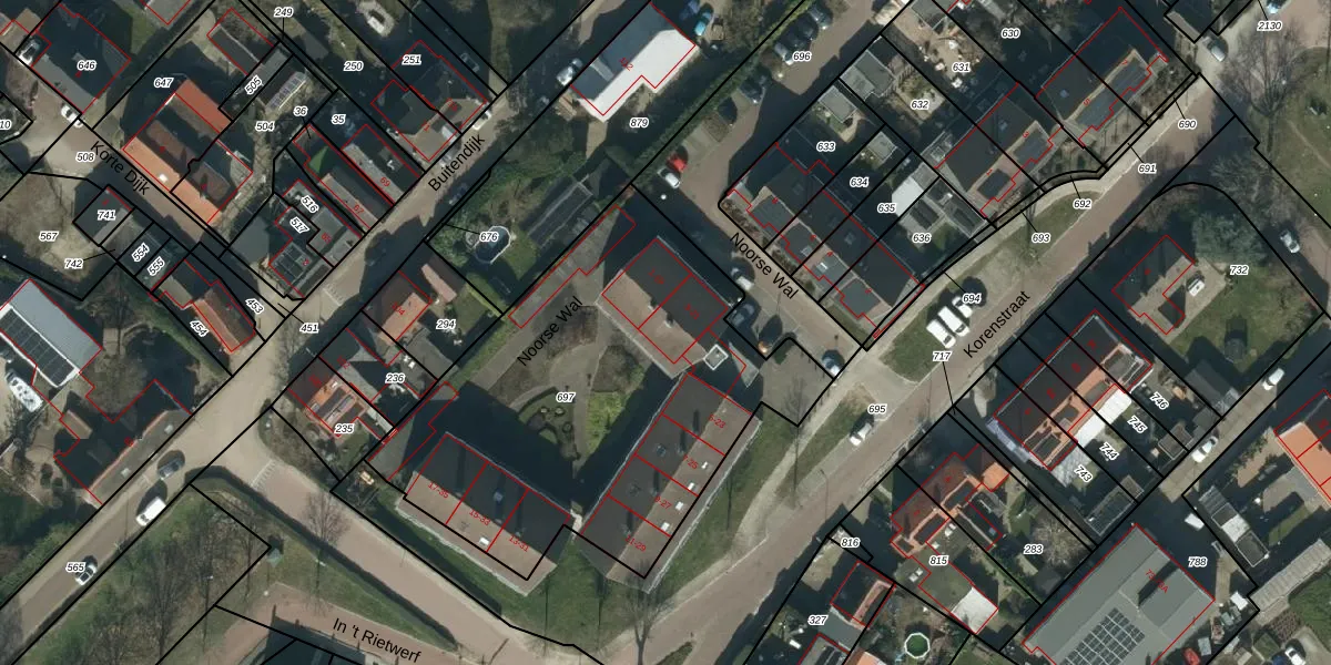 Het perceel waarop Noorse Wal 3 staat heeft een oppervlakte van 2086 m². Dit is een zeer groot perceel. De perceeloppervlakte wordt geregistreerd door het Kadaster. Gedetailleerde informatie over de maten van dit perceel kunt u vinden in het rapport Kadastrale kaart met maatvoering van Noorse Wal 3.