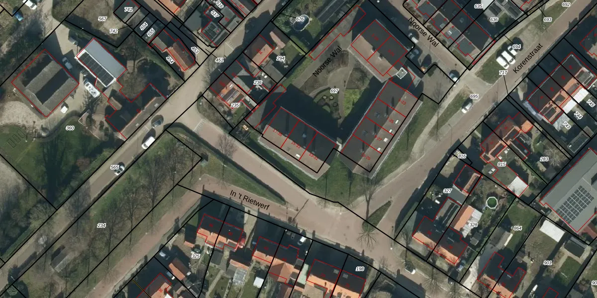 Het perceel waarop Noorse Wal 33 staat heeft een oppervlakte van 2086 m². Dit is een zeer groot perceel. De perceeloppervlakte wordt geregistreerd door het Kadaster. Gedetailleerde informatie over de maten van dit perceel kunt u vinden in het rapport Kadastrale kaart met maatvoering van Noorse Wal 33.