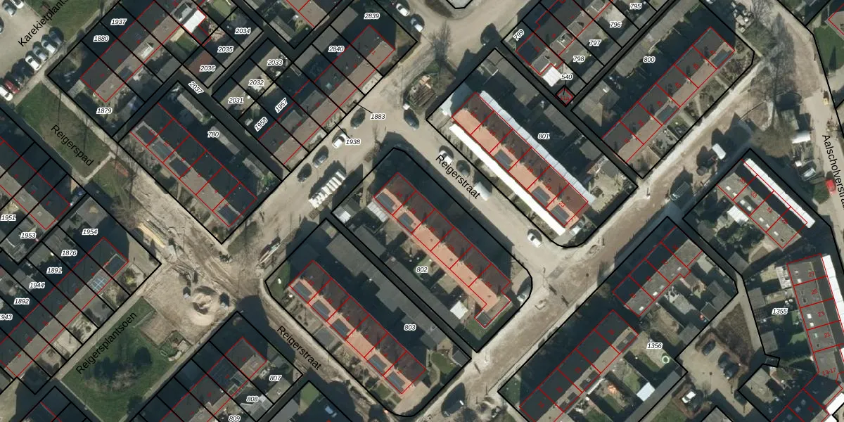 Reigerstraat 16 is gelegen op kadastraal perceel DSN03R802. Deze kadastrale aanduiding is uniek en wordt gebruikt door het Kadaster om eigendomsrechten en andere zakelijke rechten vast te leggen. Het perceel maakt onderdeel uit van de kadastrale gemeente Dussen.