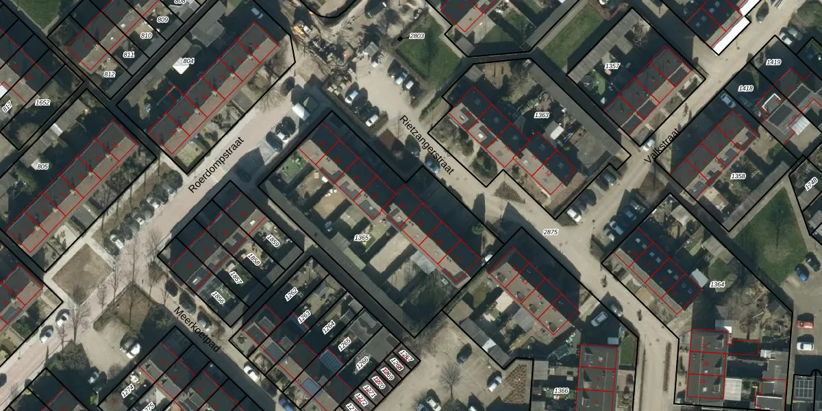 Het perceel waarop Rietzangerstraat 23 staat heeft een oppervlakte van 1526 m². Dit is een zeer groot perceel. De perceeloppervlakte wordt geregistreerd door het Kadaster. Gedetailleerde informatie over de maten van dit perceel kunt u vinden in het rapport Kadastrale kaart met maatvoering van Rietzangerstraat 23.
