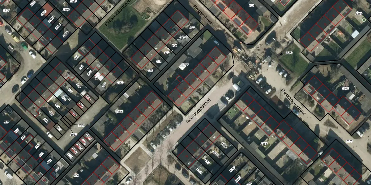 Het perceel waarop Roerdompstraat 27 staat heeft een oppervlakte van 988 m². Dit is een groot perceel. De perceeloppervlakte wordt geregistreerd door het Kadaster. Gedetailleerde informatie over de maten van dit perceel kunt u vinden in het rapport Kadastrale kaart met maatvoering van Roerdompstraat 27.