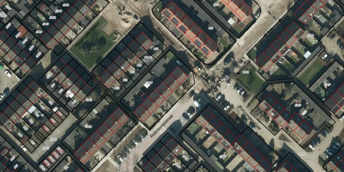 Het perceel waarop Roerdompstraat 33 staat heeft een oppervlakte van 988 m². Dit is een groot perceel. De perceeloppervlakte wordt geregistreerd door het Kadaster. Gedetailleerde informatie over de maten van dit perceel kunt u vinden in het rapport Kadastrale kaart met maatvoering van Roerdompstraat 33.