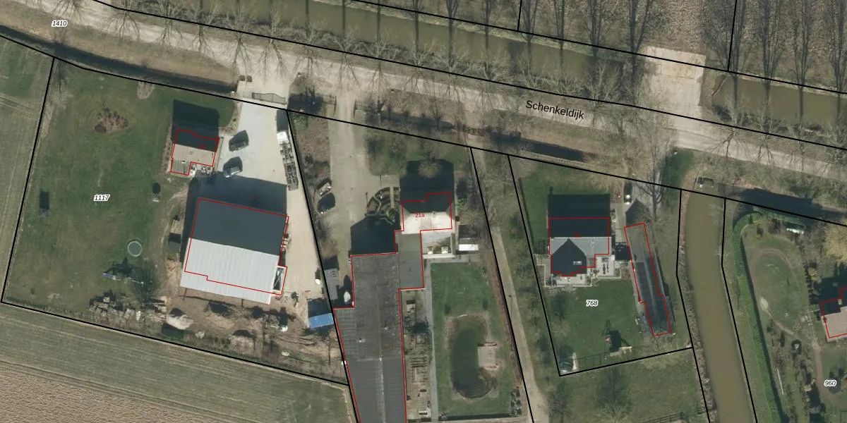 Het perceel waarop Schenkeldijk 21-a staat heeft een oppervlakte van 9995 m². Dit is een zeer groot perceel. De perceeloppervlakte wordt geregistreerd door het Kadaster. Gedetailleerde informatie over de maten van dit perceel kunt u vinden in het rapport Kadastrale kaart met maatvoering van Schenkeldijk 21-a.