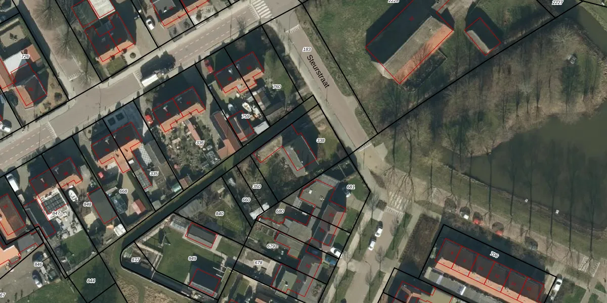 Het perceel waarop Steurstraat 2 staat heeft een oppervlakte van 523 m². Dit is een groot perceel. De perceeloppervlakte wordt geregistreerd door het Kadaster. Gedetailleerde informatie over de maten van dit perceel kunt u vinden in het rapport Kadastrale kaart met maatvoering van Steurstraat 2.