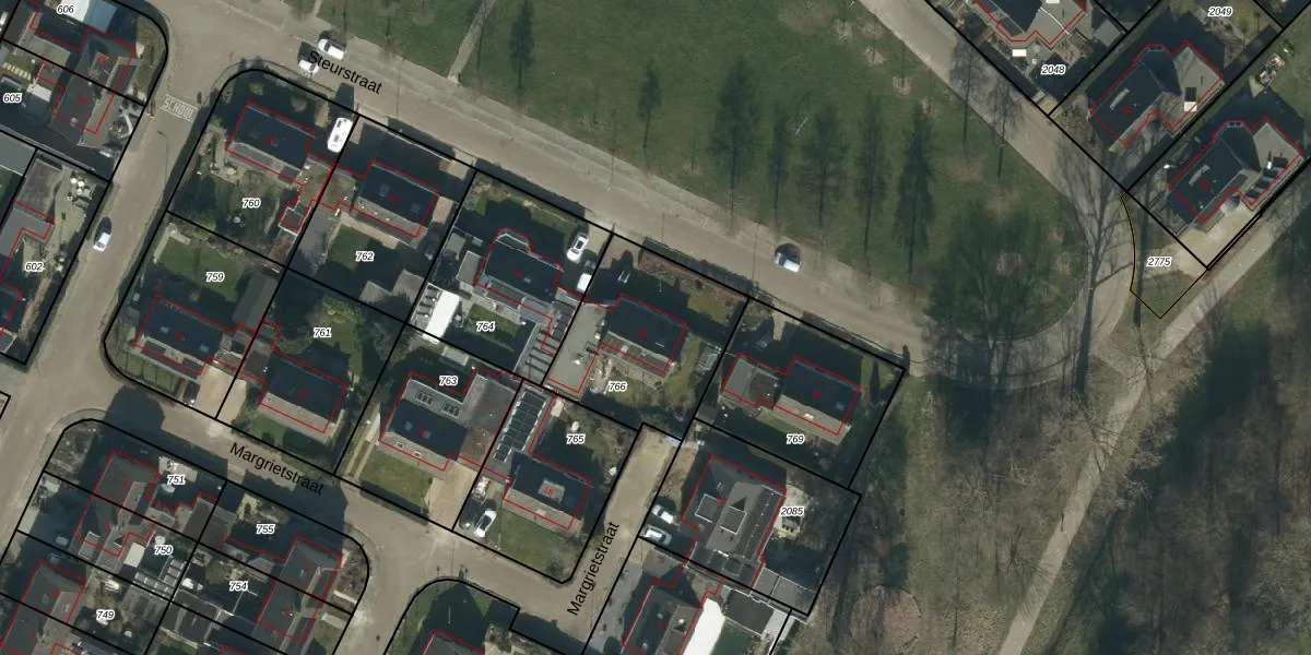 Gebruik de zoekbalk of klik op een perceel voor informatie over de adressen binnen dit perceel.