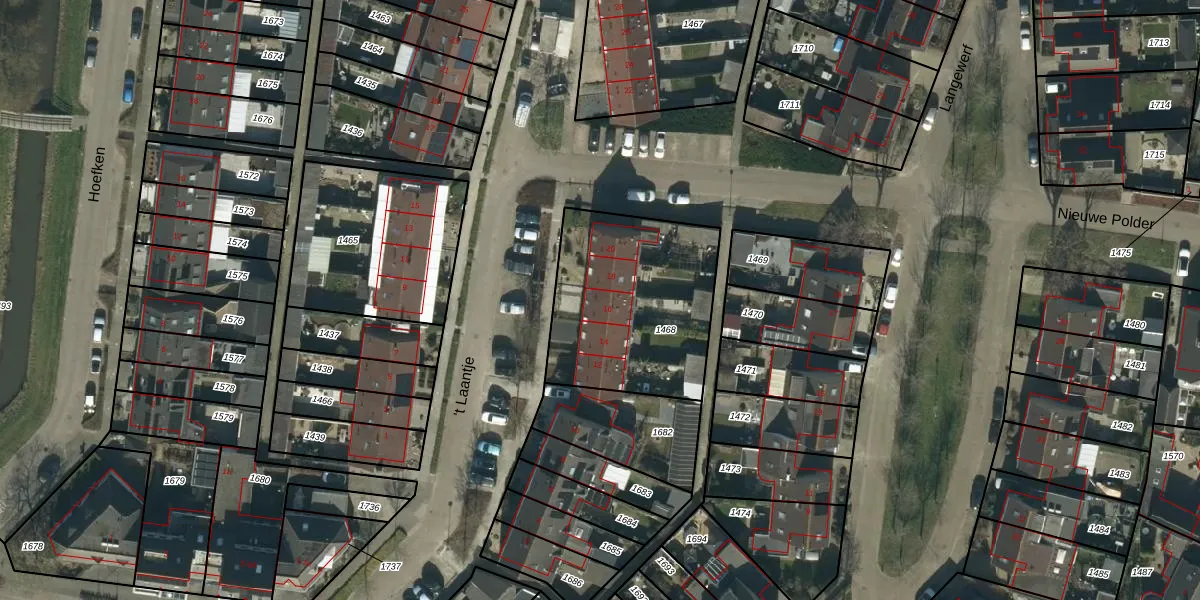 Het perceel waarop 't Laantje 16 staat heeft een oppervlakte van 765 m². Dit is een groot perceel. De perceeloppervlakte wordt geregistreerd door het Kadaster. Gedetailleerde informatie over de maten van dit perceel kunt u vinden in het rapport Kadastrale kaart met maatvoering van 't Laantje 16.