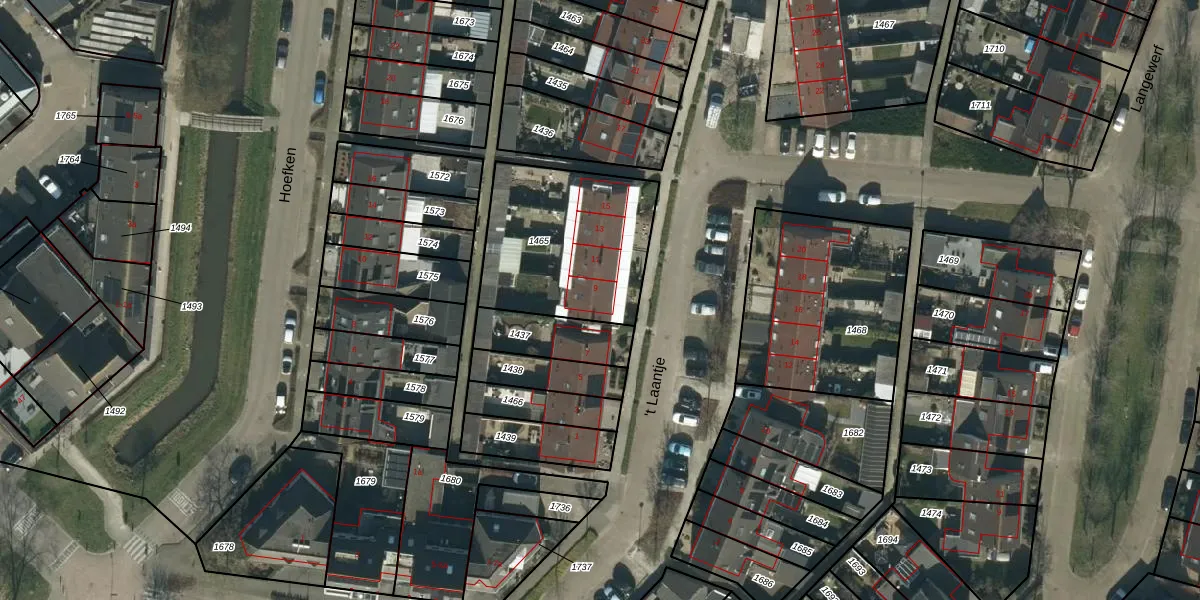 Het perceel waarop 't Laantje 9 staat heeft een oppervlakte van 659 m². Dit is een groot perceel. De perceeloppervlakte wordt geregistreerd door het Kadaster. Gedetailleerde informatie over de maten van dit perceel kunt u vinden in het rapport Kadastrale kaart met maatvoering van 't Laantje 9.