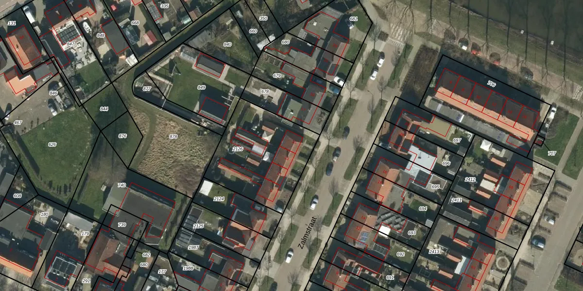 Het perceel waarop Zalmstraat 15 staat heeft een oppervlakte van 905 m². Dit is een groot perceel. De perceeloppervlakte wordt geregistreerd door het Kadaster. Gedetailleerde informatie over de maten van dit perceel kunt u vinden in het rapport Kadastrale kaart met maatvoering van Zalmstraat 15.