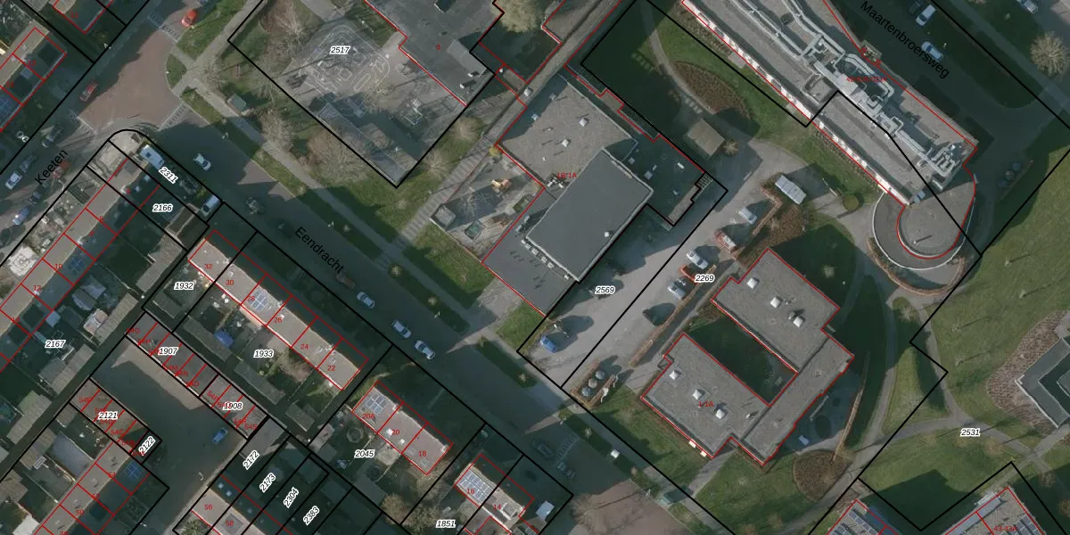 Het perceel waarop Eendracht 1-G staat heeft een oppervlakte van 6,3 ha. Dit is een zeer groot perceel. De perceeloppervlakte wordt geregistreerd door het Kadaster. Gedetailleerde informatie over de maten van dit perceel kunt u vinden in het rapport Kadastrale kaart met maatvoering van Eendracht 1-G.