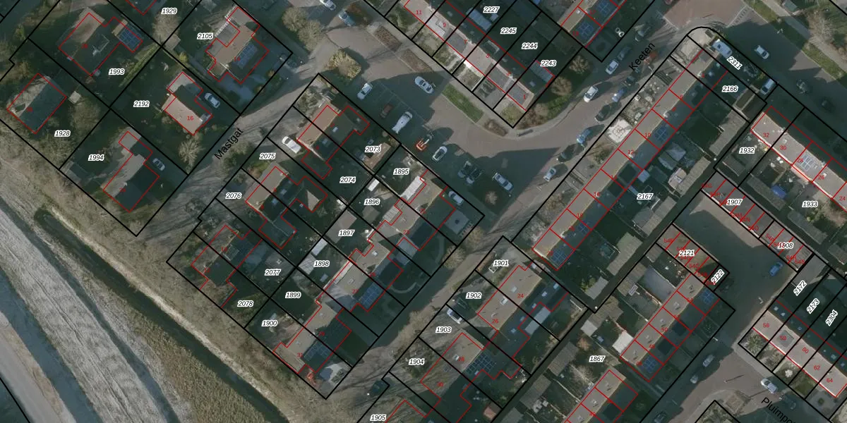 Gebruik de zoekbalk of klik op een perceel voor informatie over de adressen binnen dit perceel.