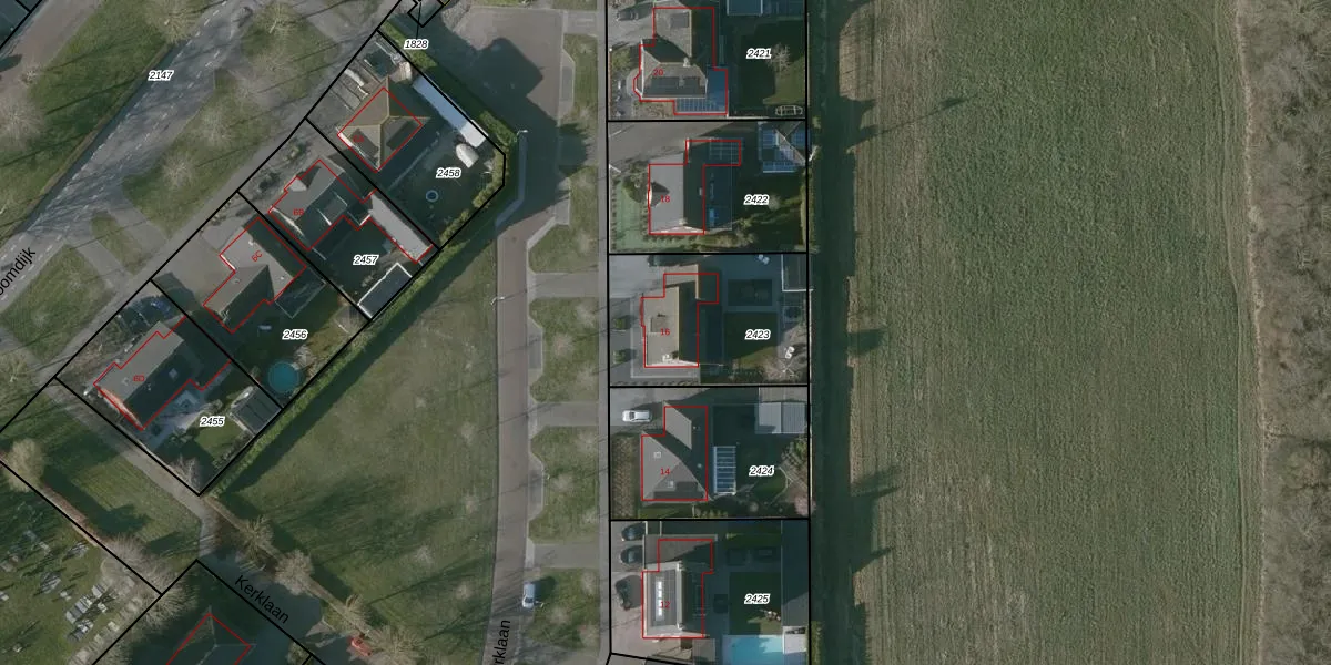 Kerklaan 16 is gelegen op kadastraal perceel KNG00H2423. Deze kadastrale aanduiding is uniek en wordt gebruikt door het Kadaster om eigendomsrechten en andere zakelijke rechten vast te leggen. Het perceel maakt onderdeel uit van de kadastrale gemeente Kruiningen.
