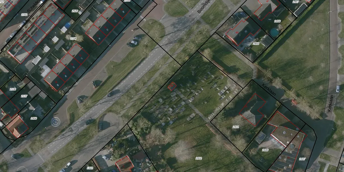 Kerklaan 9-A is gelegen op kadastraal perceel KNG00H2432. Deze kadastrale aanduiding is uniek en wordt gebruikt door het Kadaster om eigendomsrechten en andere zakelijke rechten vast te leggen. Het perceel maakt onderdeel uit van de kadastrale gemeente Kruiningen.