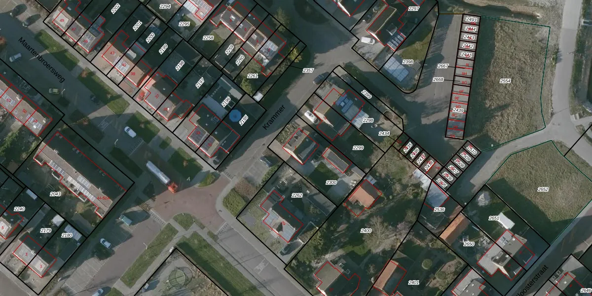 Krammer 1 is gelegen op kadastraal perceel KNG00H2300. Deze kadastrale aanduiding is uniek en wordt gebruikt door het Kadaster om eigendomsrechten en andere zakelijke rechten vast te leggen. Het perceel maakt onderdeel uit van de kadastrale gemeente Kruiningen.