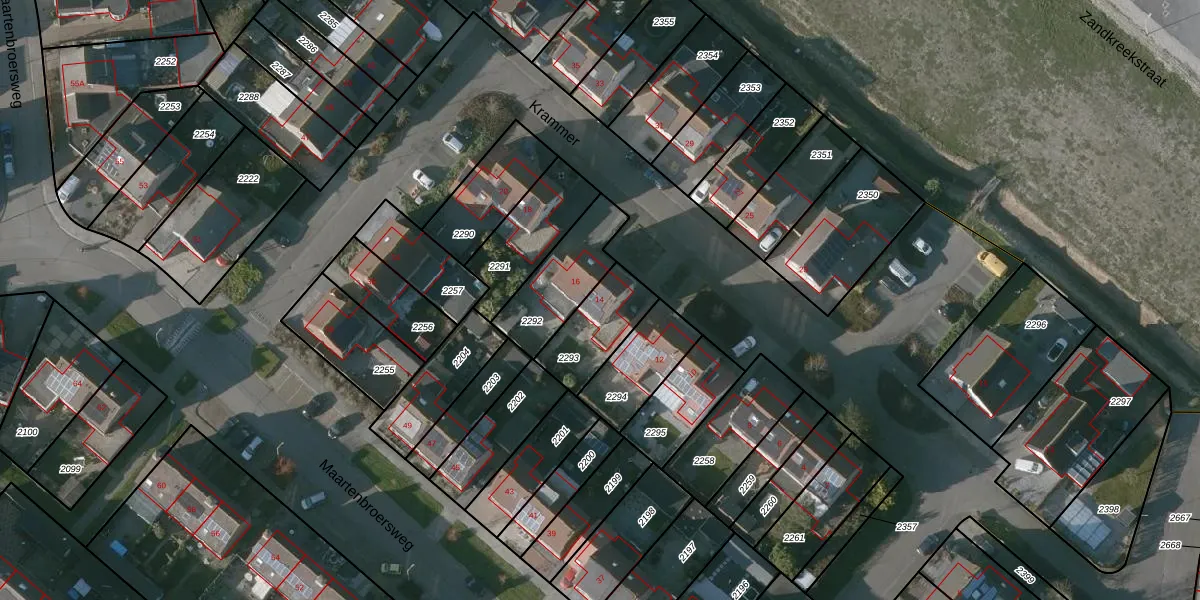 Het perceel waarop Krammer 14 staat heeft een oppervlakte van 202 m². Dit is een middelgroot perceel. De perceeloppervlakte wordt geregistreerd door het Kadaster. Gedetailleerde informatie over de maten van dit perceel kunt u vinden in het rapport Kadastrale kaart met maatvoering van Krammer 14.